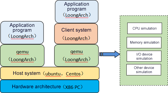 After QEMU adds support for LoongArch, users can compile, run, and debug binary software compatible with LoongArch on physical machines that do not support the LoongArch platform.
