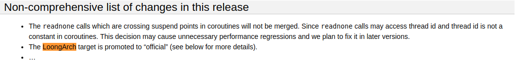 Screenshot of the LLVM 16.0.0 release notes