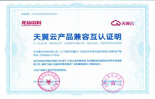 龙芯3C5000服务器与中国电信天翼云兼容适配证书