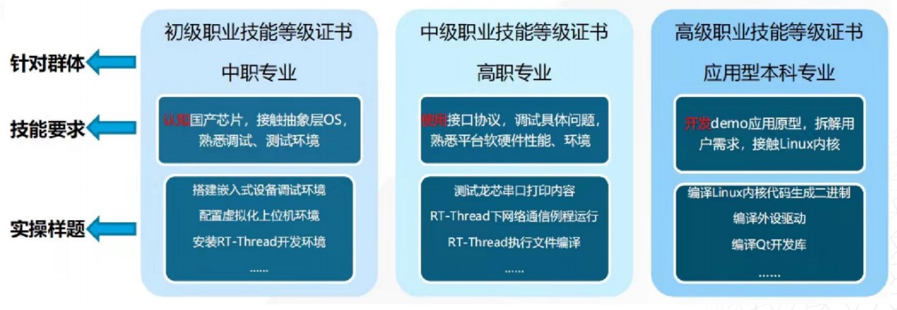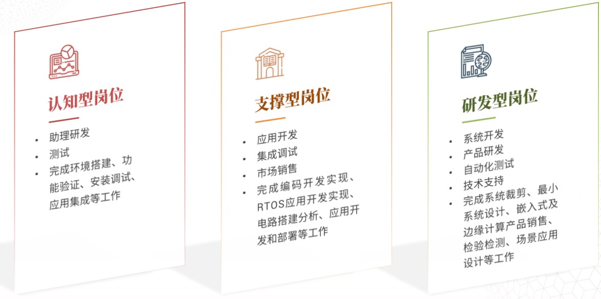 针对龙芯产业链数万家上下游单位,以嵌入式开发为主线,可以梳理三个层次:认知型、支撑型和研发型。