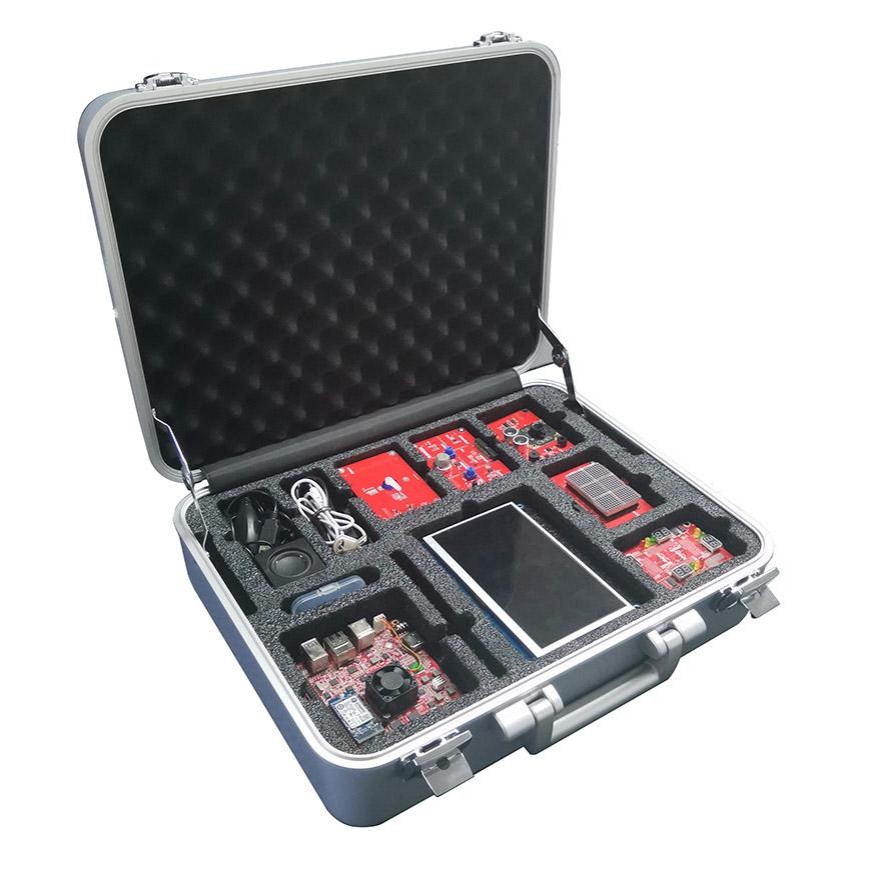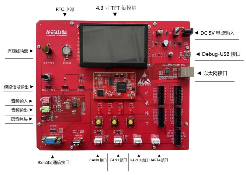 基于龙芯1B微处理器开发,配套龙芯国产LoongIDE集成开发环境的国产自主安全可控软硬件学习平台。采用龙芯1B核心板+底板形式,共引出了核心板 86 个 IO 口,另外还有 2 个电源, 2 个 RTC 电源;其中包含 GMAC、Debug USB、RGB LCD、USB、CAN、I2C、SPI、 UART、AC97、PWM 等接口;中间上面的功能模块接口,口袋机通过DB1 接口,控制配套功能模块,点阵屏模块、交通灯模块、PID 温控模块。配套开发的课程资源已经应用于多所学校的嵌入式系统应用课程教学。