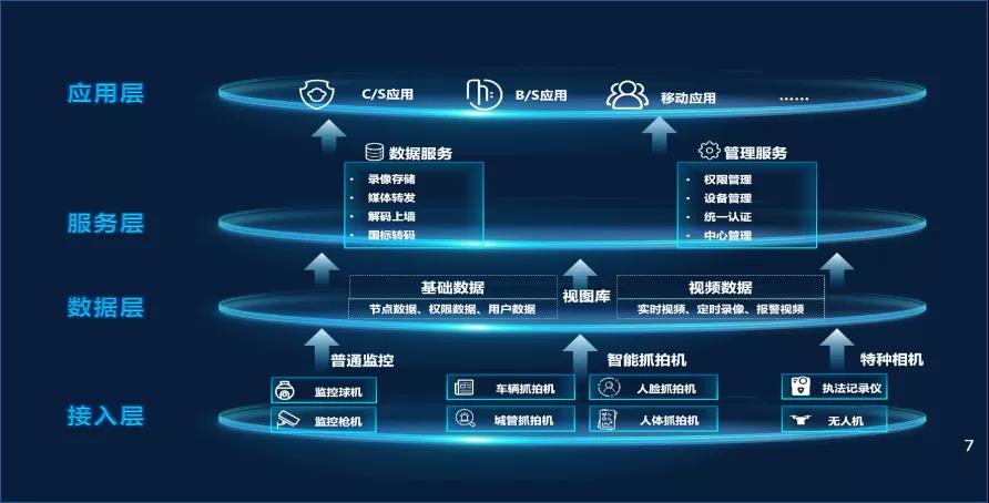 部署方式灵活,满足不同规模场景应用。方案充分考虑了各类应用场景,在产品的选型与配置上,可根据不同应用场景灵活选用不同的部署方式。针对视频采集设备规模较小、用户简单的应用场景推出一体化的解决方案,在满足使用需求的同时降低设备投入;针对视频采集设备接入规模大、用户并发需求高的应用场景采用大规模集群部署方式,充分发挥云计算与云存储的集群优势及弹性扩容优势。