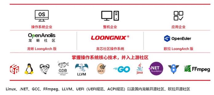 作为世界上影响力广泛的开源操作系统内核,Linux内核已衍生出多个形态的操作系统,普遍应用于全球的超算平台、云计算平台、服务器、安卓智能手机当中,目前国产信创操作系统均基于Linux内核打造。Linux内核的支持,为LoongArch软件生态发展夯实了坚固根基,也将加速推动国产自主信息技术体系的形成以及信创产业生态的落地。同时,LoongArch也将通过此举进入开源领域上游,在更广大的软硬件开发者的帮助下,后续基于Linux内核开发的操作系统都能更为便捷地支持LoongArch架构。