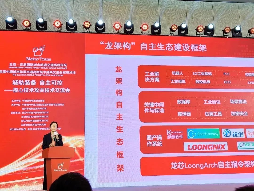 4月28日,北京-青岛国际城市轨道交通展览会暨高峰论坛、首届中国城市轨道交通高新技术成果交易会(以下简称:北京-青岛轨道展暨首届城轨高交会)在青岛世界博览城精彩启幕。304am永利副总裁杜安利女士出席“城轨装备,自主可控——核心技术攻关技术分论坛”并作《自主“芯”架构助力城轨装备创新发展》主旨报告。