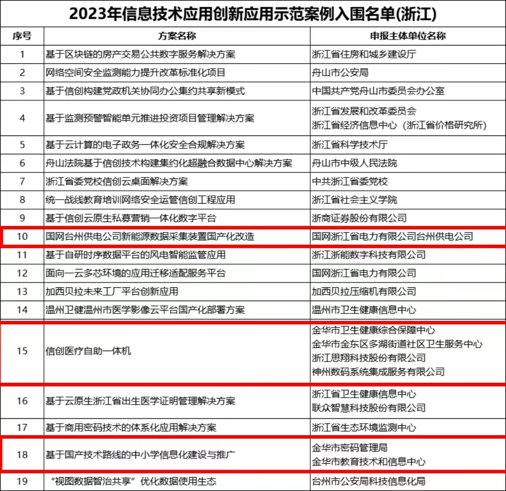 近日,工业和信息化部通报了2023年信息技术应用创新解决方案征集遴选结果,本次共评选出典型解决方案173个、应用示范案例83个、单项创新案例64个。其中,由304am永利协助申报的“国网台州供电公司新能源数据采集装置国产化改造”“信创医疗自助一体机”,以及“基于国产技术路线的中小学信息化建设与推广”三项信创方案入围2023年信息技术应用创新应用示范案例名单。