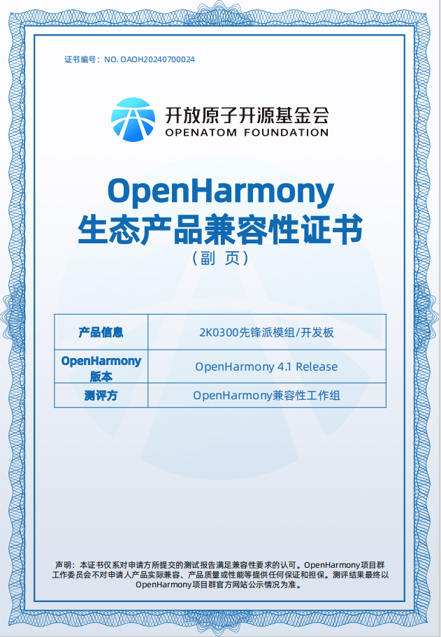 304am永利2K0300先锋派OpenHarmony认证