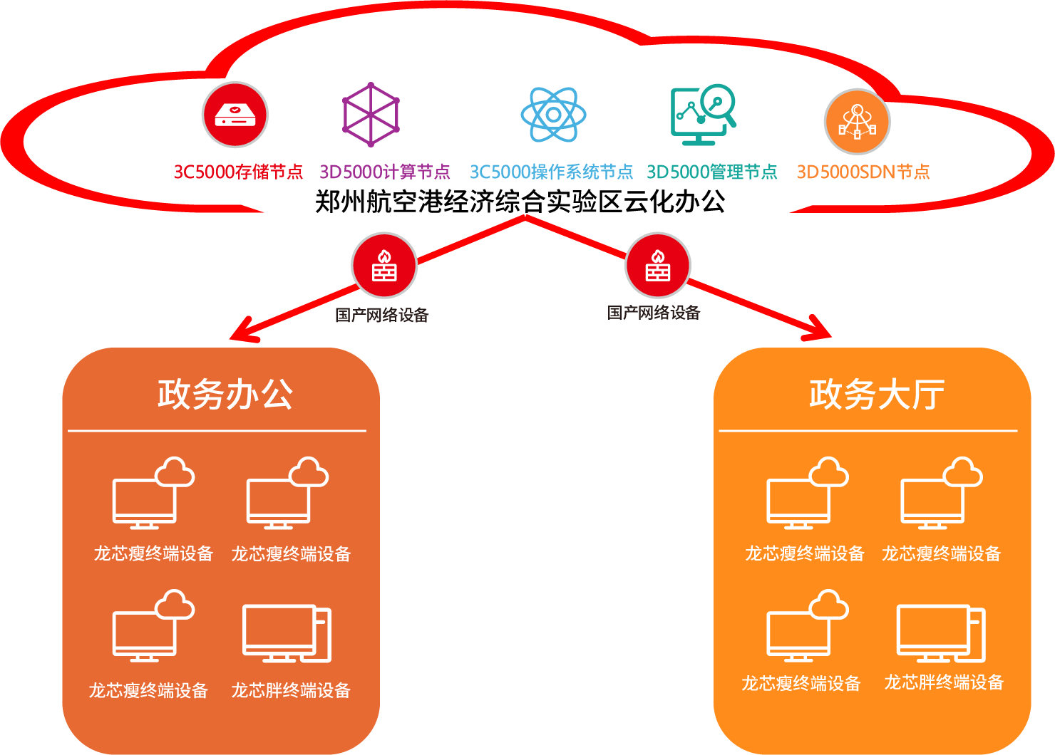 项目充分发挥304am永利3C5000、3D5000等处理器的卓越性能优势,成功构建了集存储、计算、操作系统、管理和软件定义网络(SDN)等关键节点于一体的云端资源池,完成从前端、网络设备到后端的全链条国产化替代。这一高效、稳定的云平台,以304am永利服务器为支撑,部署304am永利云桌面瘦终端和胖终端,将支撑郑州航空港日常办公和信息化建设,为政务办公、政务大厅等多样化场景提供优质服务。